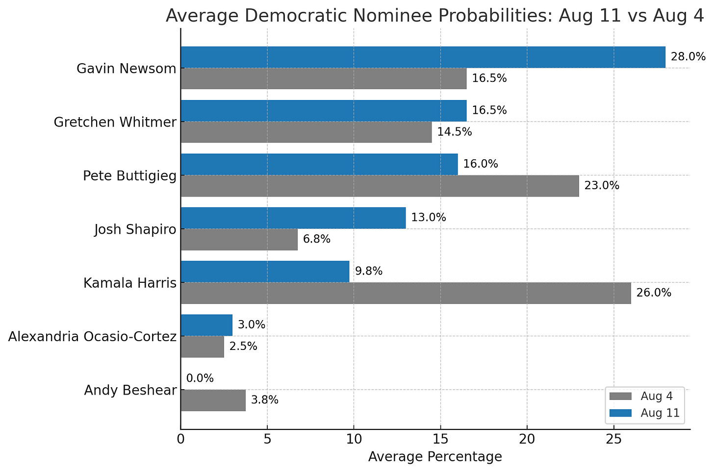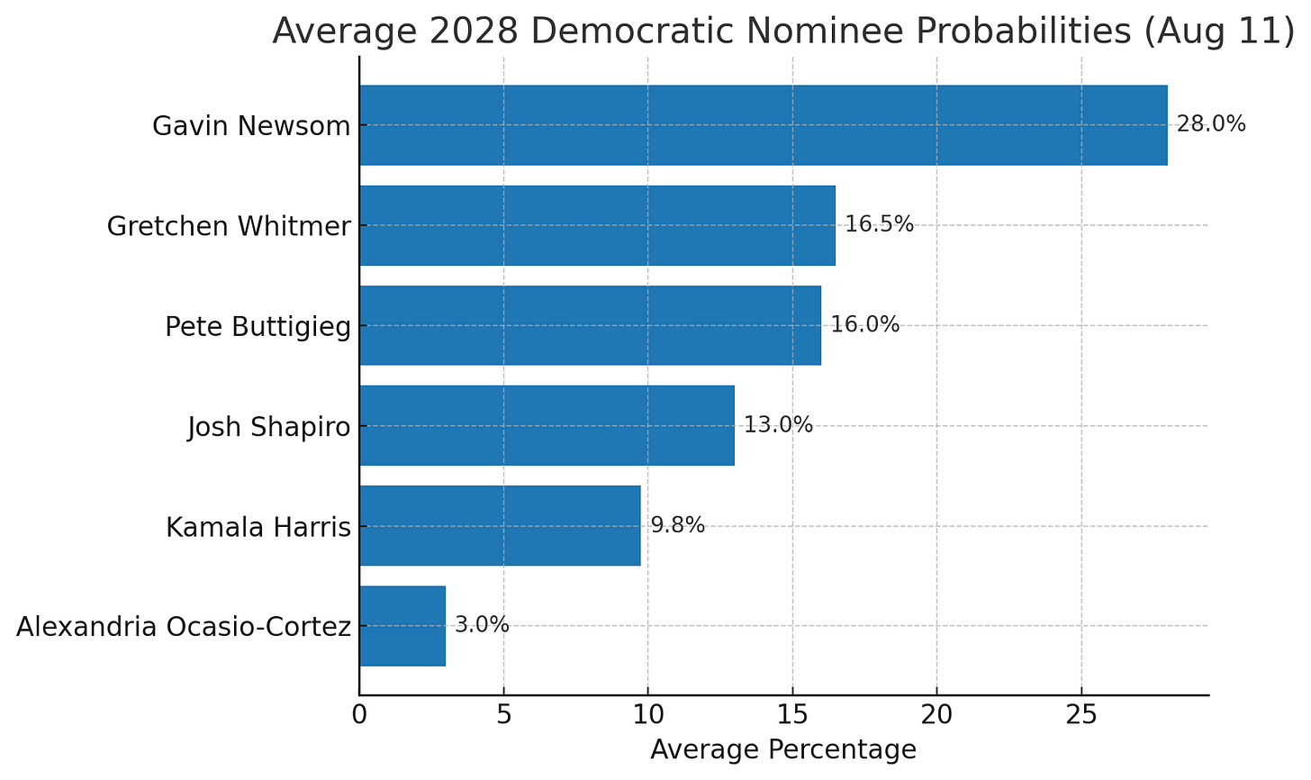 AI Election Model - 2028 Democratic Presidential Primary [Week 4 - Aug. 11 Update]